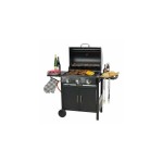 Kooki 3-pits Buitenkeuken. Een stijlvolle 3-pits gas-barbecue / grill voor buitenshuis. Enkele specificaties: Zwart gelakt stalen deksel met thermometer. Afmeting grill gedeelte: ca. 60x42cm. Kookhoogte: 80cm. 2 Verchroomde grillroosters (ca. 30x42cm). 3 Roestvrijstalen branders (3x 2,83Kw). Elektronische ontsteking. 3 Bedieningsknoppen. Stalen frontpaneel. Uitneembare vet opvangbak. Stalen trolley, bijzettafels en plank. 3 Haken aan beide zijden van de bijzettafels. Voorzien van 2 wielen. Afmeting geïnstalleerd: Breedte 129cm, Hoogte 103cm, Diepte 55cm. Deze BBQ wordt geleverd zonder gasfles, slang en regelaar.