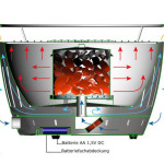 Het houtskool bevindt zich in een aparte houtskool reservoir. Er kunnen dus nooit vetten afdruipen op het houtskool en hierdoor ontstaat er géén rookvorming. Dit is prettig barbecueën en bovendien erg gezond. De LotusGrill is voorzien van een aan/uit knop voor de toevoer van lucht, wat tevens dient als een variabele temperatuurregelaar. Hoe meer lucht wordt toegevoerd aan het houtskool, hoe beter deze zal branden. Het voordeel van dit systeem is dat het koude lucht opneemt en dit door de luchtpijp omzet in hete lucht, wat vervolgens het houtskoolreservoir ingaat. De lange sleuven aan de van de buitenste schaal zorgen ervoor dat de ruimte tussen de binnen- en buitenschaal goed geventileerd worden met de koude lucht. De hete lucht ontsnapt door de sleuven van de binnenste schaal. Het resultaat? De LotusGrill wordt nooit heet van de buitenkant. Je kan hem dus altijd optillen!